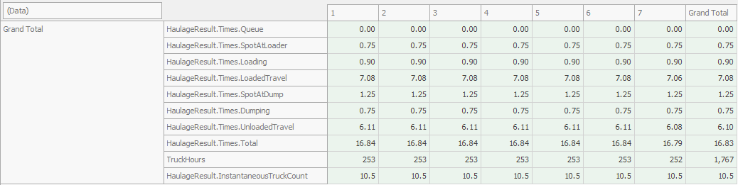 An unfactored example haul cycle time report can be seen below;