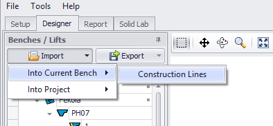 Navigate to the bench in question, head to the Import button on the top left and select Import - Into Current Bench - Construction Lines from the menu.
