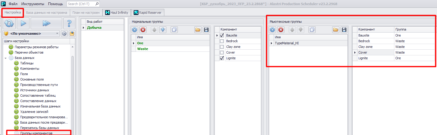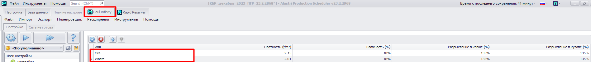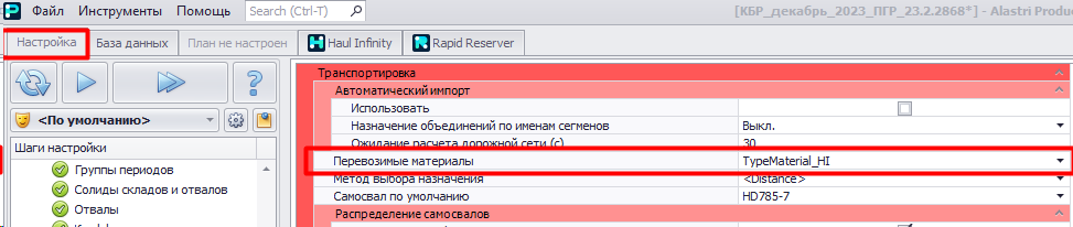 В модуле Production Scheduler в шаге "Конечная настройка" иногда могут возникнуть ошибка которая сообщает: Следующие типы материалов отсутствуют в Haul Infinity (Скриншот №1). Только после исправления данной ошибки, мы можем перейти в следующий шаг настройки.